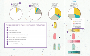 The Teacher Review Screen allows for the monitoring of student progress over time. The images below show a mockup of the screen as well as a description of the various elements and functionality on the page.